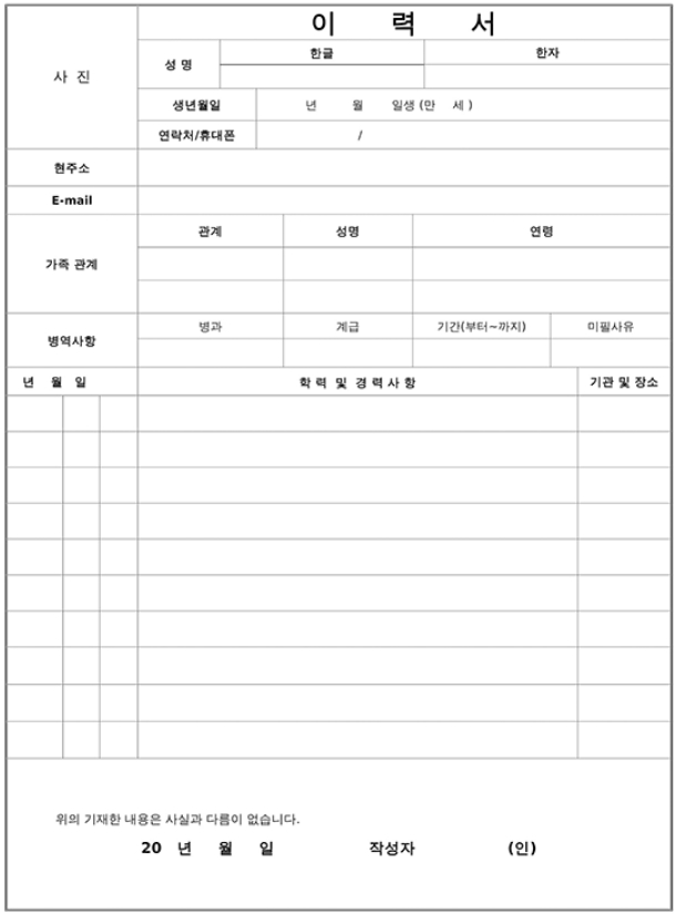 이력서 양식 한글